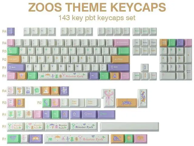 Widely Compatible Keycapskeycaps consist of 143 keys, suitable for 61/64/68/75/84/87/96/98/104/108 mechanical and optical keyboards, and any "+" Key switches, ideal for custom mechanical keyboard options.