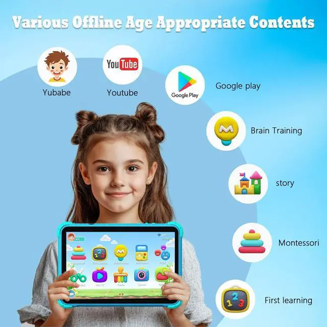 More Popular Apps: This Android tablet pc doubles as a work-friendly device for adults while offering a safe, kid-optimized experience, Besides the Preloaded Educational Apps & Games, Tablet for children also accessible to download more hot Apps like downloading Netflix, YouTube Kids, and more from the Google Play Store, which is great for family trips, quiet time, or interactive learning. A must-have toddler tablet that entertains while teachingideal for keeping little ones busy and happy at home or on the go! ^^ Kids Tablets with