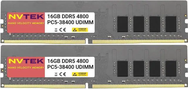 DescriptionNVTEK 32GB (2X16GB) DDR5 4800MHZ PC5-38400 NON-ECC UDIMM KIT Desktop PC Computer Memory
