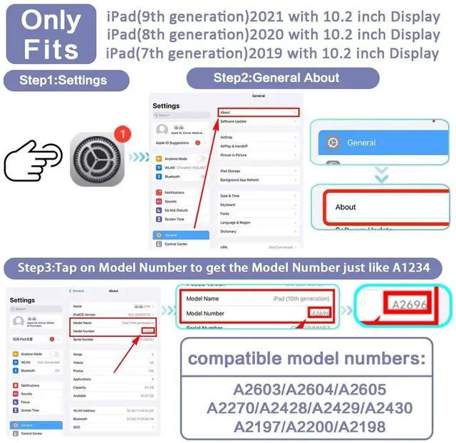 Number: A2197/A2200/A2198). How to check your iPad's Model Name & Model NumberOpen your iPad find Settings Icon---Tap on Settings then find General----Tap on General then find About----Tap on About then you will see the Model Name----Tap on Model Number you will get the Model Number just like A1234. Just like the image two. We just want you can buy ipad case can fit for your ipad and make you happy; )Safety material: Our iPad cover kids are made of non-toxic, flavorless, environment friendly recycled plastic and inks. Long- lasting, anti-yellowing. Lalumix Case for iPad 9Th Generation Case.