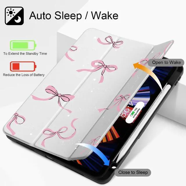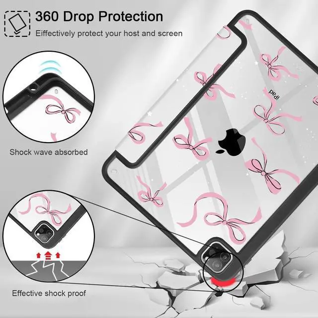 Compatibility with: Exclusively designed for iPad Pro 11 Inch 4th Generation 2022 (A2435/A2759/A2761/A2762), iPad Pro 11 Inch 3rd Generation 2021 (A2301/A2377/A2459/A2460), iPad Pro 11 Inch 2nd Generation 2020 (A2228/A2068/A2230/A2231) and iPad Pro 11 Inch 1st Generation 2018 (A1980/A2013/A1934/A1979), Not compatible with any other iPad devices. ^^ Full ProtectionMade of durable PU leather and TPU, front and back covered by soft PU, the inside durable TPU can fix your Tablet and protect its back cover and four corners, maximum protect your tablet from drop and scratch, the surface is soft and silky to provide a comfortable touch to the skin. ^^ Clear Black CoverHardshell back cover with flexible TPU bumper protects your iPad from shocks, drops and impacts. Soft microfiber interior front prevents your tablet from scratched. And the crystal clear back cover will proudly show off the Apple icon. ^^ For Apple Pencil ChargingBuilt-in Pencil holder & adapter slot, designed for charge/pair with the 2nd Gen Pencil. Grab your Pencil & adapter effortlessly whenever you want, easily to carry your pencil with your device. (Case only, other accessories not included! ) ^^ Comfortable Use Featuring a trifold design that allows for two positions.