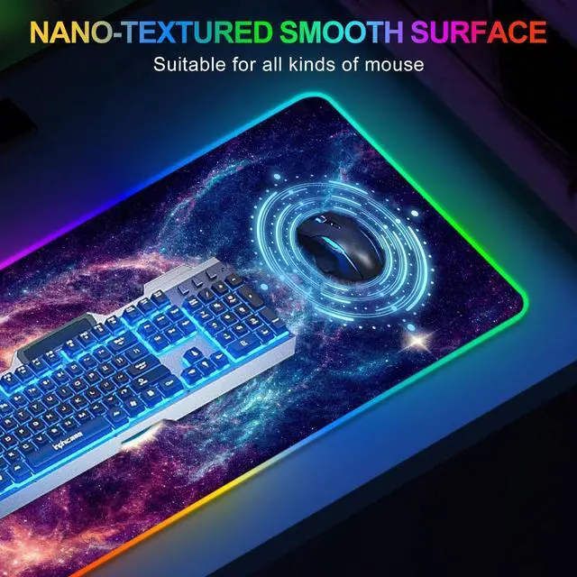 ARTSO RGB Gaming Mouse Pad, Large Mousepad with Led Light, Cosmic Starry Sky Keyboard Pad Gaming Accessories for Desk, Non-Slip Rubber Base Big Mouse Mat for Gamer