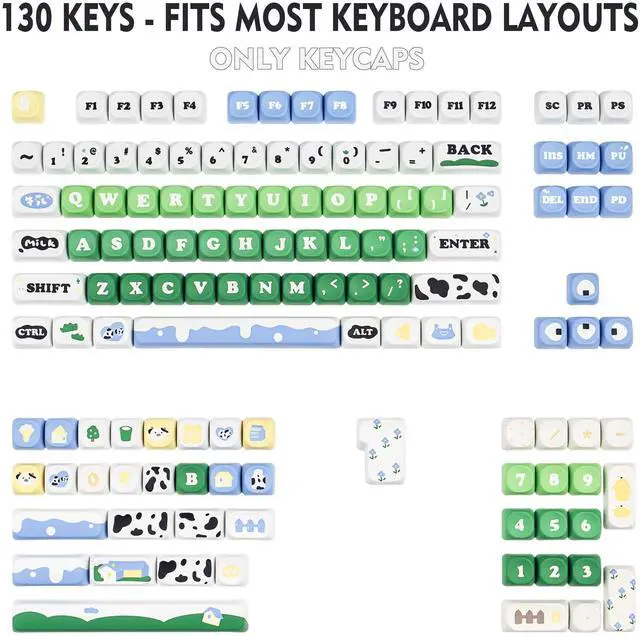Wide Compatibility: It has a total of 130 keys, including various sizes of keycaps suitable for most cherry mx switches 60% 65% 95% UK ANSI layout alice keyboard mechanical keyboards