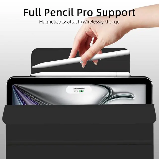 Note: It is Not compatible with any other devices. ^^ Premium MaterialsCrafted from high-quality waterproof PU leather exterior and anti-scratch microfiber interior. This case offers total full body protection against fingerprints, dust, scratches, water splashes and shocks. ^^ Auto Wake/SleepEquipped with a built-in magnetic strip, the case supports auto sleep/wake, effortlessly waking or putting your device to sleep without the need to press the ON/OFF button, effectively conserving battery life. ^^ Supports Apple PencilThis case for iPad Air 13 inch with pencil holder (Pencil Pro), you can charge your Apple Pencil Pro in the pencil holder when you're not using it, and avoid the losing or breaking your pencil when you're walking or outdoor.