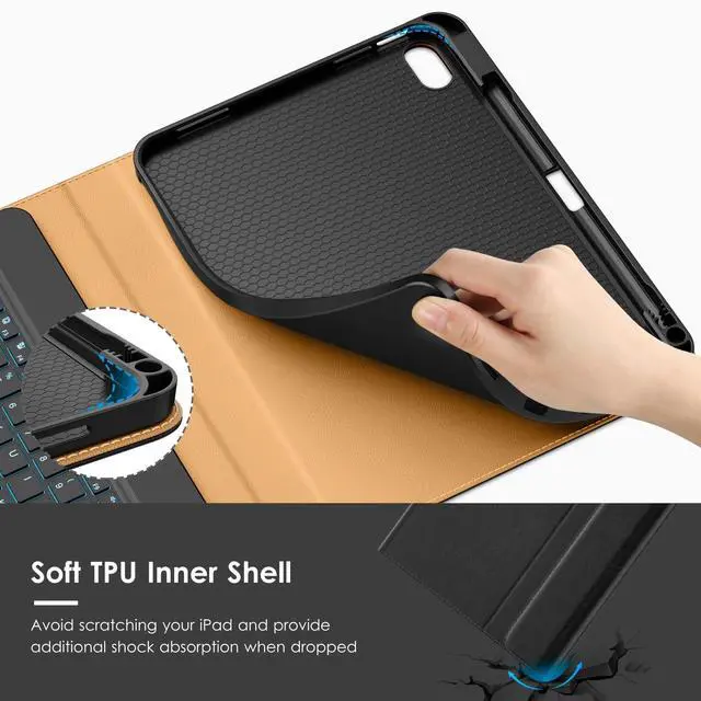 Number: A2757/A2777/A2696), Not compatible with any other iPad devices. Please check back bottom of your iPad to find the model number. ^^ [FASHION AND PROTECTION] - Offers the difference by full protection Design, leather back provides strong support, anti-fingerprint and anti-scratch. Soft TPU frame protects your iPad from drops and shocks. ^^ [LAPTOP-LIKE TYPING]The keys of the keyboard are scissor structure, square chocolate keycap ergonomic design. Large, well-spaced keyboard containing a full row of iPadOS shortcut keys lets you type comfortably with speed and accuracy. ^^ [Multiple Function] - This iPad Keyboard case is Built-in Pencil Holder, that supports Touch ID, Camera Protection, and Two stand Angle. Comes with a front ID card pocket to store notes, cash and cards like a wallet. ^^ [Reliable Supplier] - We Offers Lifetime Free Replacement for Your IPad Case. (Needs to be activated within 30 days of purchasing) Your Satisfaction Is Our Top Concern.
