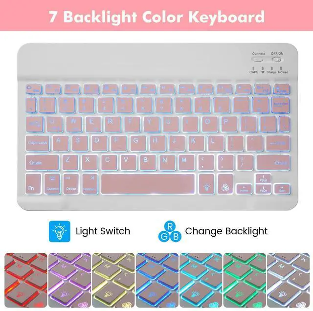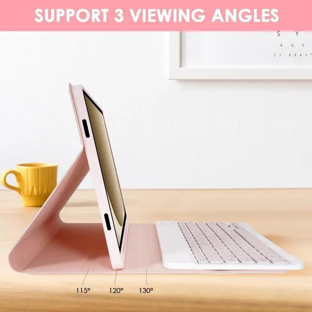 (NOTE: Please charge the keyboard for about 2-3 hours before first use). Automatically sleep or wake when the case is closed or opened, which preserves battery life, reducing energy consumption and extending device longevity. ^^ Wireless Keyboard with Multiple Viewing Angles With this sleek and stylish design, our small keyboard case can turn your pad into a laptop in less than a second. You can change your pad from different viewing angles to landscape mode to provide the most comfortable viewing position. Good for working, writing, or watching videos.