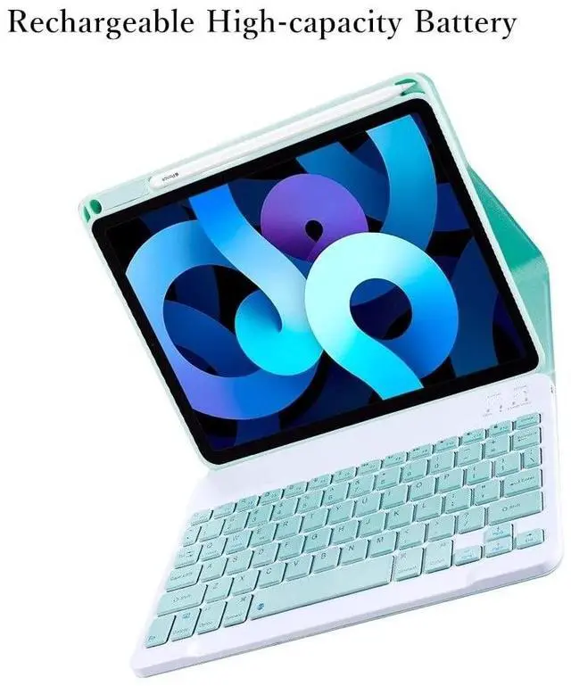 Multiple Viewing Angles & Removeable Magnetic Color Keyboard Bulit-in Rechargeable Keyboard . Cute Color keys, The magnetic wireless keyboard is removable .You can connect this Bluetooth keyboard to any other device with Bluetooth such as your iPhone ,iPad ,laptop,tablet or PC.Compatibile with IOS, Android and Windows System.