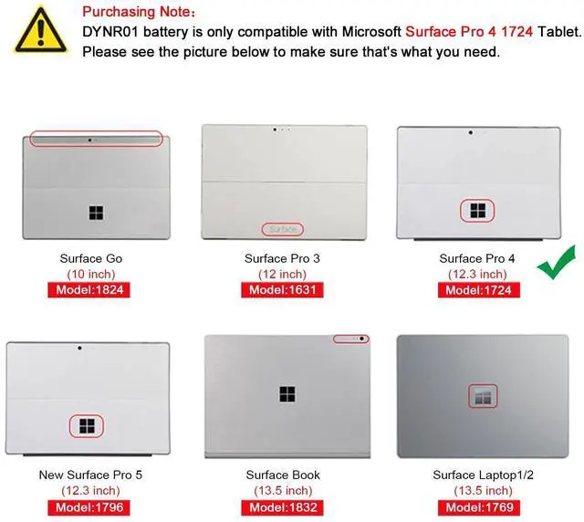 Battery Color: Black ^^ Compatible P/N DYNR01 G3HTA027H G3HTA026H (Note: There are several different series for Surface tablet, the battery inside is not compatible for each other, please confirm your surface tablet model and then choose the right battery) ^^