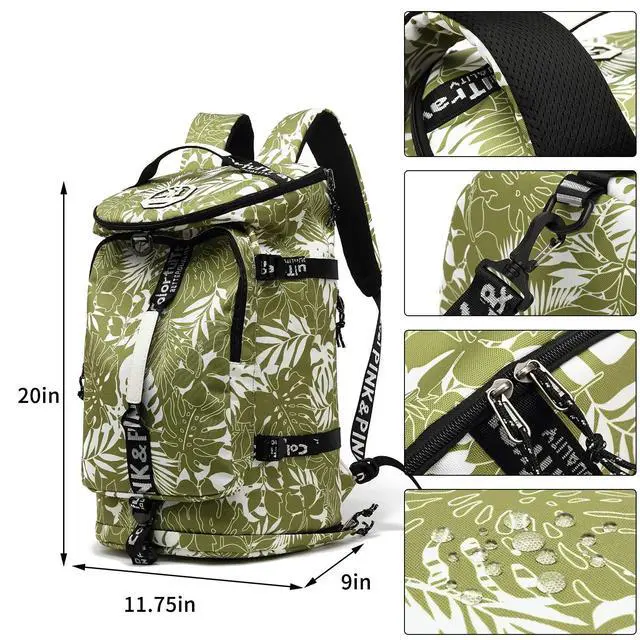 Dimensions 11.75 x 9 x 20 inches (L x W x H). Lightweight, only 1.98LB. ^^ Large Capacity Roomy Space with practical pockets provides you enough items storage and helps you organize them easily, including 1 front pocket/1 main large compartment/2 side pockets (for bottle and umbrella) /1 shoe compartment. The main compartment contains 1 upper mesh zip pocket, 1 notebook compartment, 2 zip pockets, and 2 slots, can hold your iPhone, iPad, pen, keys, wallet, magazine, clothes, and also be placed in cameras, power bank, etc.