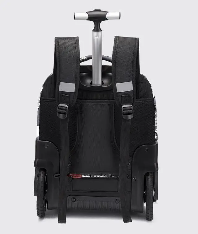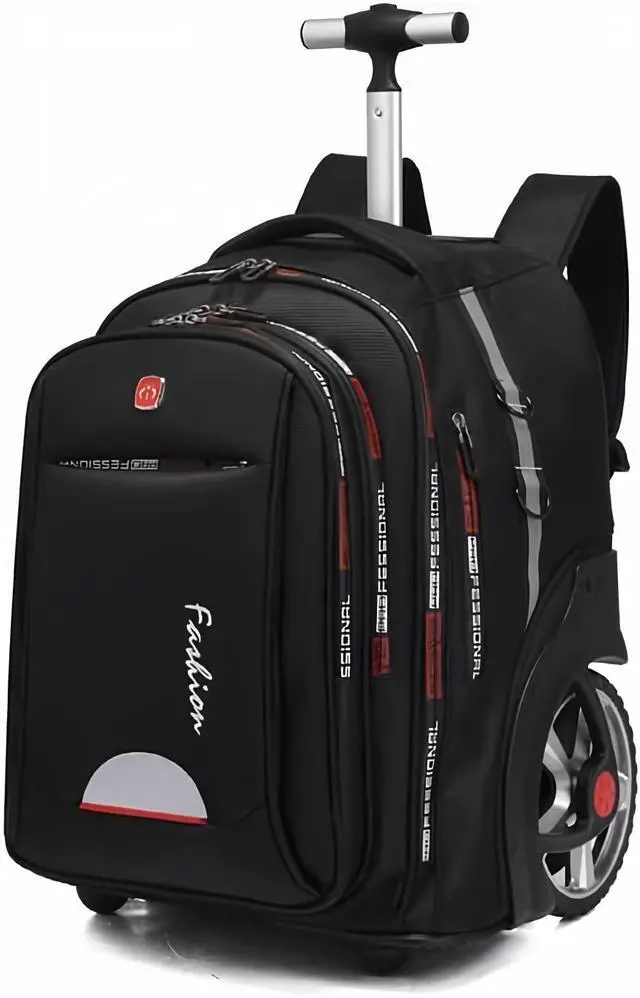 Rolling wheel backpack fit everything in it, contain all Kind of Books, Files, Pens, Computer, iPhones, Keys, iPads, Wallets and some small equipment with room to spare. ^^ [Hideaway Shoulder strap and Telescoping Aluminium Alloy ABS Handle and Wheel Cover Compartment] Carry On Backpack have ABS Material Handle, better with time, no more worry about handle won't close; Rolling backpack for adults has a wheel cover, so will not stain your clothes. Our wheeled backpack equipped with adjustable shoulder straps, ergonomic and comfortable. Thickly padded back panel adds support while using as a carry on travel backpack.