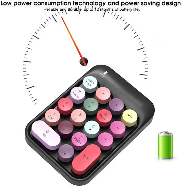 The numeric keyboard uses the to create a quiet typing environment for you. ^^ 2.4GH z connection, 18-key design, with backspace key, you can easily correct the text. ^^ Stable connection function, effective control range up to 10meter. ^^ System requirements for Win XP/Win7/Win8/Win10/IOS, with strong adaptability. ^^ Low power consumption, strong battery life up to 12 months, battery life. ^^ ^^ ^^ ^^ ^^