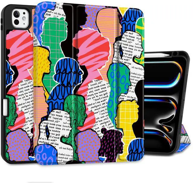 MEEgoodo Case for M5 iPad Pro 11 inch 2025/M4 iPad Pro 11 inch Case 2024, Tablet Cover with Trifold Stand & Pencil Holder & Auto Wake/Sleep & Soft TPU Back Cover, Diverse People Abstract Art