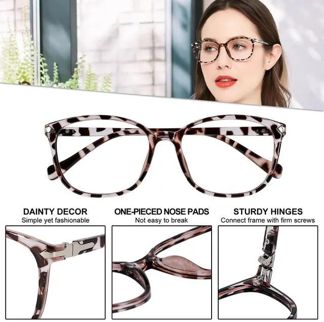 4 packs reading glasses 1.0 for women - WEMOOTANTS women's readers 1.00 features high definition lens in large designer frames, helping seeing close up super clearly. The valuable set of 4 pairs is convenient for keeping cheaters in different places so you always have a pair handy. ^^ Protect your eyes from blue rays - Our blue light reading glasses lens have advanced blue light blocking coating (No color tinted) to effectually filter out harmful blue lights and reduce discomfort and eyestrain when you browsing phone, tablet or pad for long time. ^^ Classic style with modern appeal - Large square readers lens in full rimmed trendy leopard frame.