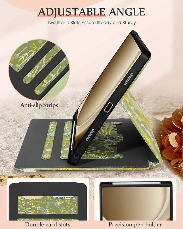 Adjustable Angles & Pencil Holder: This embroidered case for for Galaxy tab a9 plus makes your tab a9 plus can stand at 2 different positions on the table. Provide you comfortable viewing and typing experiences. This for tab a9 plus case has built-in pencil holder, so you can place and remove your pencil easily ^^