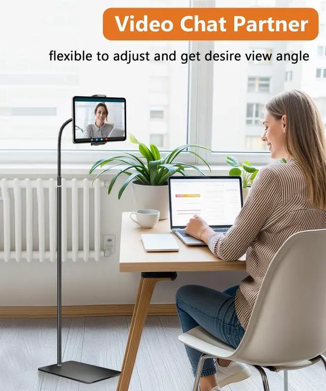 Unmatched Viewing ExperienceDesigned to free your hands while providing an exceptional viewing experience, our tablet floor stand is perfect for a variety of activities. Whether you're watching movies, reading e-books, vlogging, playing games, or even practicing guitar or piano with music notes, this iPad stand excels in a variety of environments - from sofas and beds to exercise bikes, kitchens and office desks ^^ Enhanced Stability with Heavy-duty Gooseneck DesignOur iPad floor stand is designed to provide unmatched stability even when heavier iPads are supported. The reinforced gooseneck, crafted from thickened metal and a solid alloy core, ensures exceptional durability and strength, eliminates the risk of sagging and provides a reliable foundation for your device ^^ Versatile Height AdjustmentWith a height adjustment range from 17.7" to an impressive 65", our flexible iPad stand effortlessly adjusts to your needs.