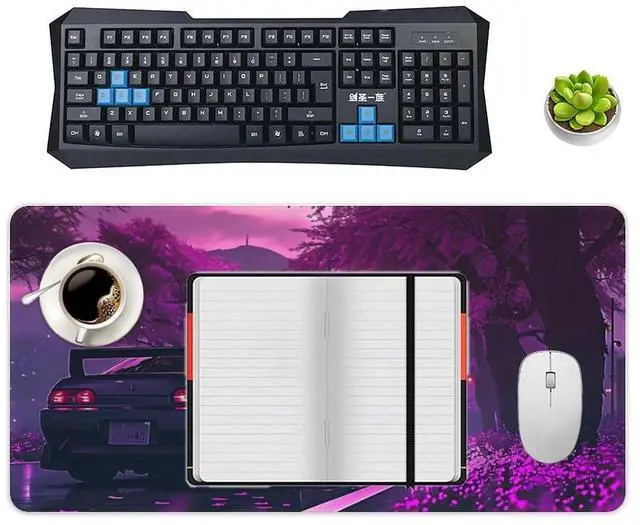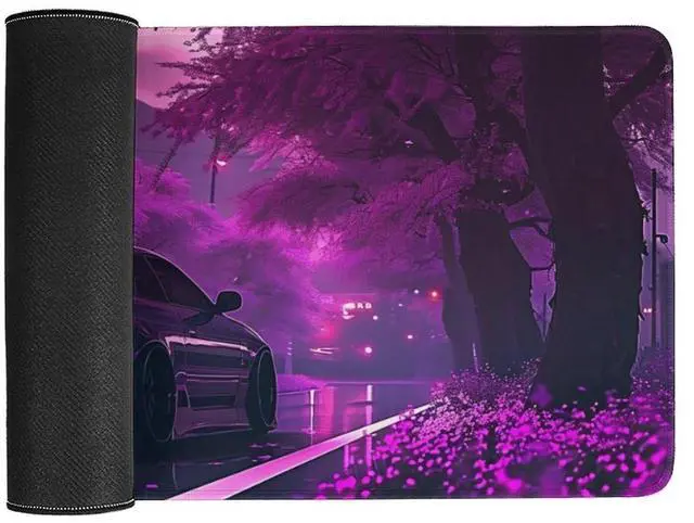 FeoYoed Large Mouse Pad Anime Jdm Car S13 Purple Flowers Static Desk Mat Computer Accessories Gaming Office Organizers Supplies Decor Essentials Keyboard Pads for Desk Rubber 30x60cm