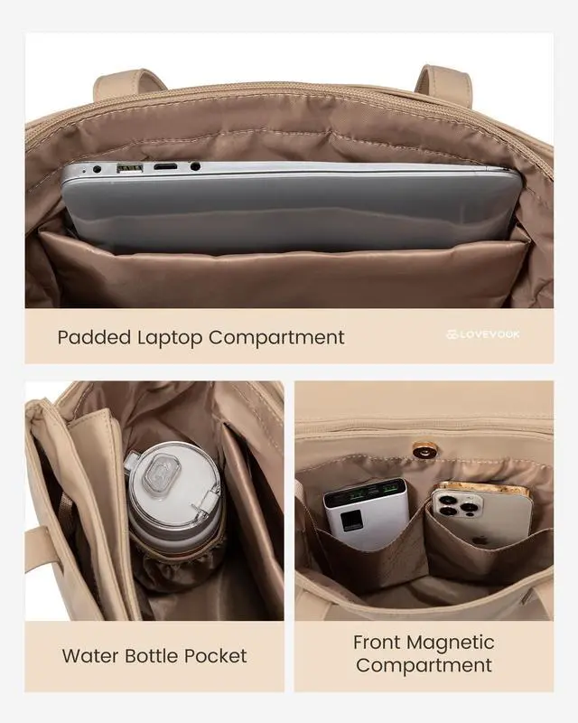 Design: This 18L work tote features 2 main compartments for effortless organization and quick access to essentials, which is perfect for carrying everything you need, making it ideal for busy women on the go.