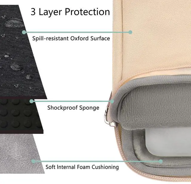 ^^ High-quality Materials: The surface of the laptop sleeve cover is made of high quality oxford fabric, which is waterproof and spill-resistant fabric material. There is no need to worry rainy days when you are out, the handbag will give your tablet good protection. The top quality zipper slides smooth and like butter, which is easy to pull open and closure, the best companion for your computer.