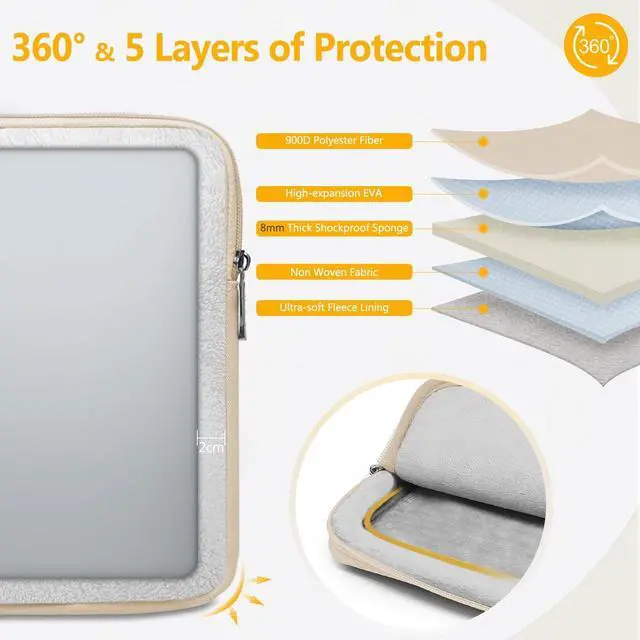 Multi-layer Superior Protection: The outer fabric is made of 900D polyester fabric, which is water-resistant, scratch-resistant and wear-resistant. The middle layer is padded with 8mm thickness to absorb bumps and shocks. The soft velvet lining protects your laptop from scratches when you take your laptop out/in. There is also a 2cm wide protective ridge all around. As a result, your laptop is always tightly wrapped and protected with 360 multiple protection ^^ Larger