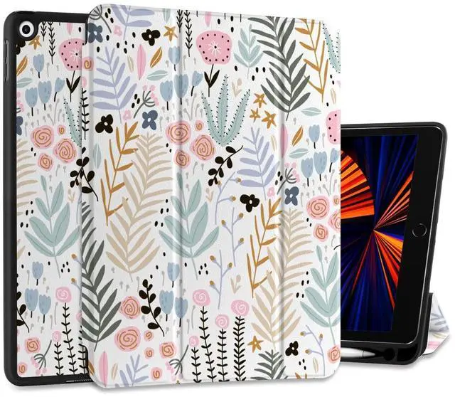 DONGKE Case Compatible with iPad 10.2 Inch 2021 2020 2019 iPad 9th/8th/7th Generation with Pencil Holder, Slim Stand Protective Case with Soft TPU Back, Auto Sleep/Wake Cover, Cute Florals