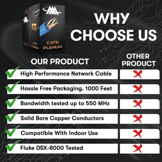 ^^ Versatile & Reliable: Whether setting up a home network, a commercial enterprise, or requiring high-temperature resilience with our plenum-rated cables, we've got you covered.
