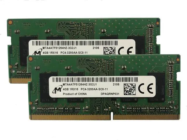 MTA4ATF51264HZ-3G2J1 Form Factor 260PIN SODIMM Total Capacity 8GB (2 x 4GB) Specs DDR4 PC4-25600 Unbuffered NON-ECC DDR4-3200 1.2V Series MICRON Speed 3200 MHz Voltage 1.2V DIMM Type Unbuffered Component for laptops and All-in-one PC s MICRON DDR4 SODIMMs Product Highlights Speeds start at 3200 MTs Increase bandwidth by up to 30 Percent Reduce power consumption by up to 40 Percent and extend battery life Faster burst access speeds for improved sequential data throughput Optimized for next generation processors and platforms Available in modules up to 8GB and kits up to 32GB