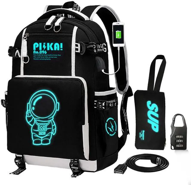Luminous BackpackThe best part of this anime backpack is after absorbing light in the day about 10-20 minutes, you can see the fluorescent effect in the dark, it could be maintained about 4-7 hours, it would make your backpack most special and coolest.Makes you safer when jogging, walking and cycling at night.backpack with lock