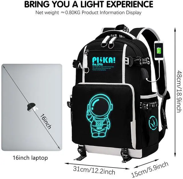 DescriptionAnime Luminous Backpack: The best part of this stylish cool luminous bag is after absorbing light about 10-20 minutes, you can see the fluorescent effect in the dark and can keep that status about 5-8 hours