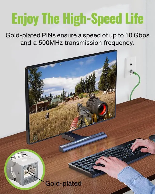 RELIABLE NETWORK PERFORMANCE: The transmission rate of the shielding network jack is up to 10Gbps/500MHz, which meets daily internet needs. The zinc alloy shielded housing and gold-plated PINs ensure a fast download or gaming experience.
