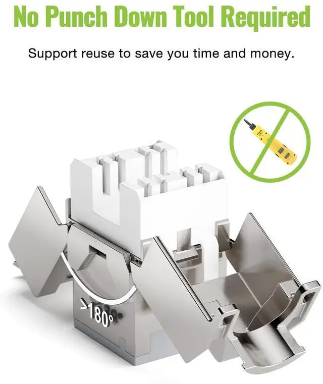 NO PUNCHDOWN TOOL REQUIRED: Adopt a durable IDC modular design with a large opening (OVER 180 degrees) for easy operation. After threading, press the wire cap into the IDC module and close the metal casing, and you're done! It is also reusable, saving you time and money.