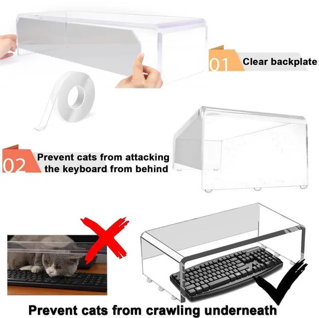 "Tired of 'helpful' cat paws hitting CTRL+ALT+DEL? Other Anti-Cat Keyboard Cover leave your keyboard's back vulnerable - that's where 80% of cats strike! Our upgraded backplate adds rear protection to block sneaky paw attacks from behind with Clear Acrylic Backplate. Now you can finally type in peace! whether they're swiping from above, sides, or executing surprise rear assaults. ^^ You need a way to get the kitties off the keyboard and stop them from writing messages in game chat! when you work from home. Like that it works to keep cats from accidentally pushing key on keyboard.