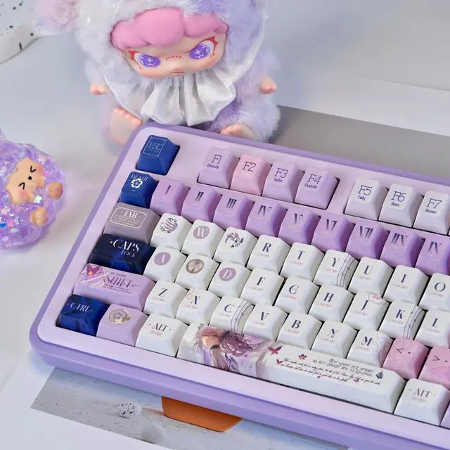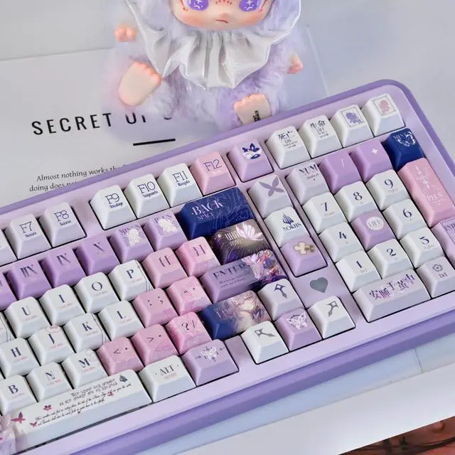 Japanese Anime Design: Purple Cartoon design with heat Dye Sublimation. Colors stay vibrant and won't fade, giving your keyboard a unique artistic look. ^^ Cherry Profile Keycaps Purple Cartoon keycaps are made of cherry profile, which is ergonomic and comfortable typing keycap, cherry keycaps provides you with a more natural and comfortable typing experience.