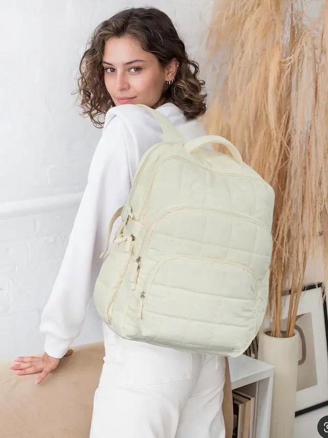 Upgraded Wrinkle-Resistant Material: This Quilted laptop backpack for women now features an advanced wrinkle-resistant fabric with enhanced shape recovery. The upgraded material maintains its smooth appearance even after prolonged use, offering superior durability and effortless maintenance for daily commutes and travel.