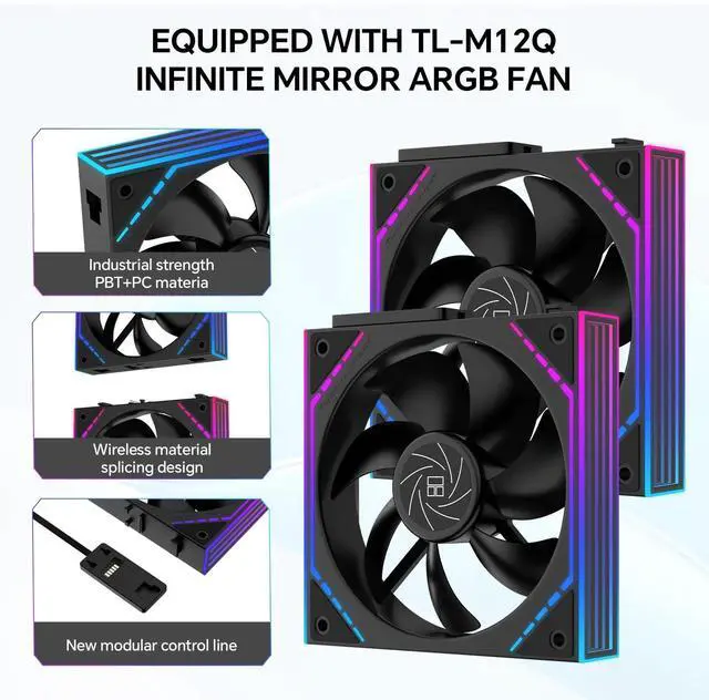 All-in-one fan design: Daisy-chain TL-M12Q 120 mm PWM ARGB fans link from fan to fan to simplify wiring and installation, reducing cable clutter so multiple radiator fans can share a single 4 pin PWM and 5 V addressable RGB header on compatible motherboards for synchronized speed and lighting ^^ Wide socket support, SS2