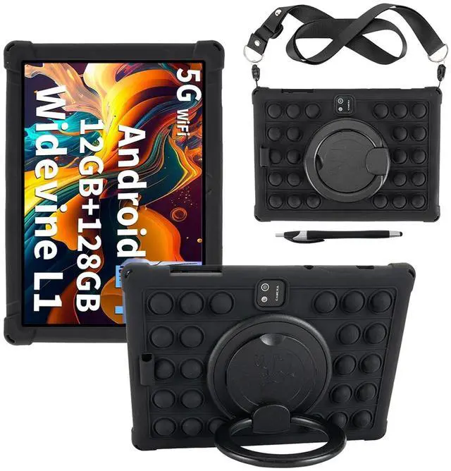 Case for QDDQ/JJGJ TB02 Tablet 10inch,NOUKAJU Tablet Protection Cover(with Shoulder Strap+Pen),Adjustable Bracket,Soft Silicone,Silicone Protection Cover for JJGJ TB02(Black)