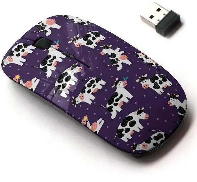 CJCBROES 2.4G Wireless Mouse with Cute Pattern Design for All Laptops and Desktops with Nano Receiver - Funny Cows Farm