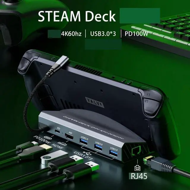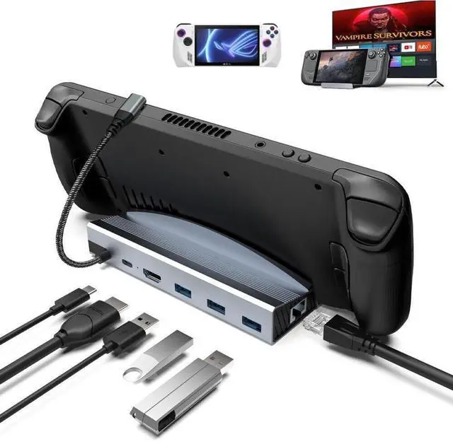 Transform your gaming experience with this versatile 6-in-1 docking station designed for Steam Deck and ROG Ally. This dock delivers stunning 4K visuals at 60Hz through HDMI 2.0, perfect for playing your favorite games on larger screens. Stay connected with lightning-fast 1000Mbps Gigabit Ethernet and expand your connectivity options with three USB-A 3.0 ports for peripherals. The 100W USB-C charging port ensures your device stays powered during extended gaming sessions. This compact hub combines functionality with convenience, making it an essential accessory for Steam Deck and ROG Ally users who want to maximize their gaming setup.