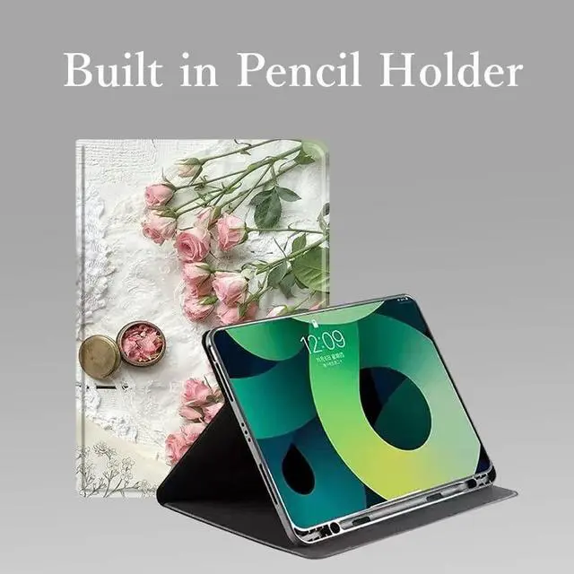 Case With Pencil Holder Floral print case comes with a pencil slot Tightly hold your pencil, protect your pencil from losing. A hole is designed behind the holder for pushing your pencil out easily.