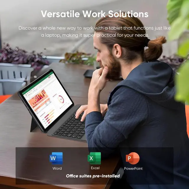 OFFICE READY OUT OF THE BOX: This 2-in-1 tablet PC arrives with MS Office 2024 pre-installed, making it ready for productivity the moment you power it on. Whether you use the touchscreen interface, the detachable keyboard, or the on-screen keyboard for quick input, its designed to function as both a compact microcomputer and a capable personal computer.