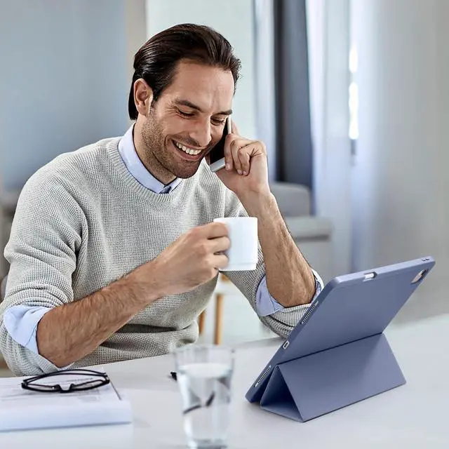 Two Viewing Angles: Trifold stand design with dual standing provide two positions for comfortable viewing or typing, you can have an excellent experience when you are relaxing or working