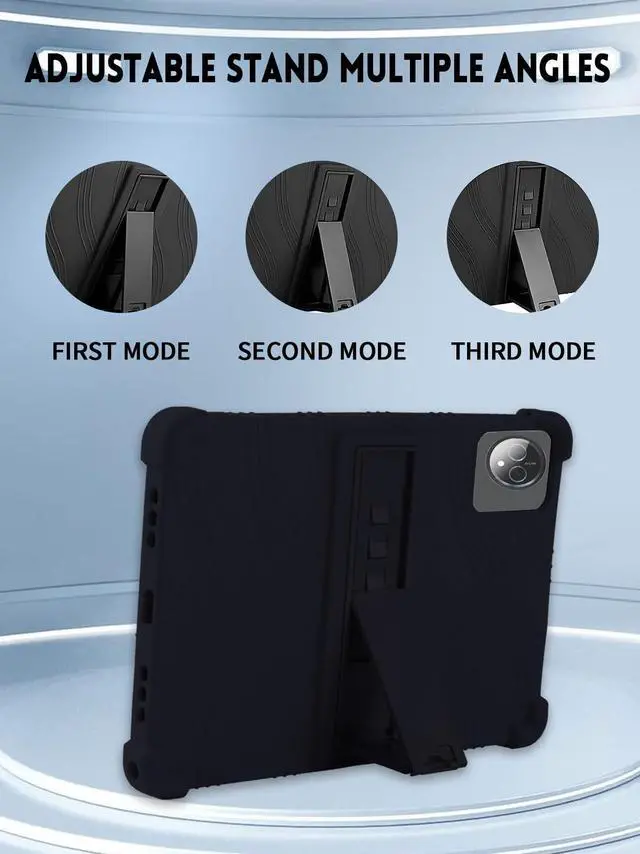 ^^ Adjustable stand: The stand can be folded and adjusted to keep the tablet at an ideal angle.