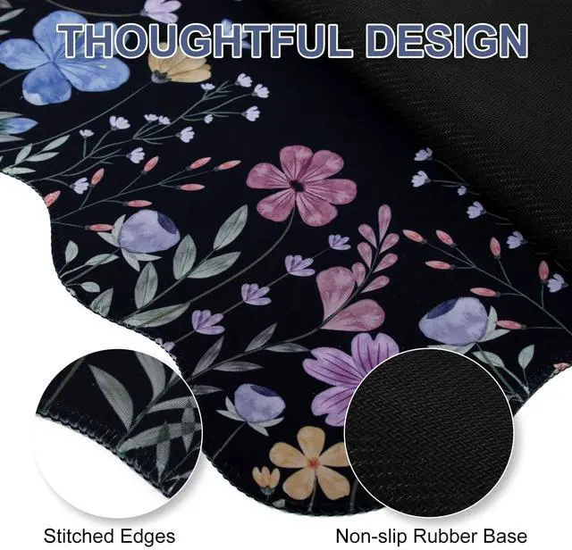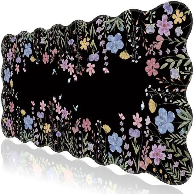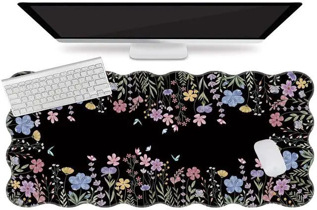 Botanical Irregular Wavy Design: Flowers black desk mat features a scalloped edge design, making it more stylish than traditional rectangular mouse pads. The black botanical desk pad mat with exquisite stitched edges for wear resistance and durability, adding a touch of elegance to your desktop ^^ Large Desk