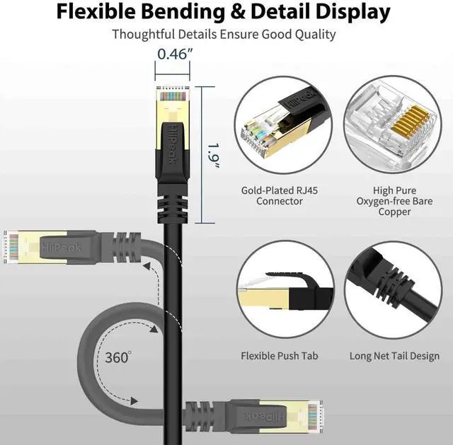 More Durable & Longer Lifespan: The HiiPeak Internet cables adopt pure copper wires and gold-plated RJ45 plugs feature corrosion resistance, anti-oxidation and more sensitive. The outermost layer uses thiken PVC jacket, premium material to ensure long lifespan quality and better performance. ^^ Premium
