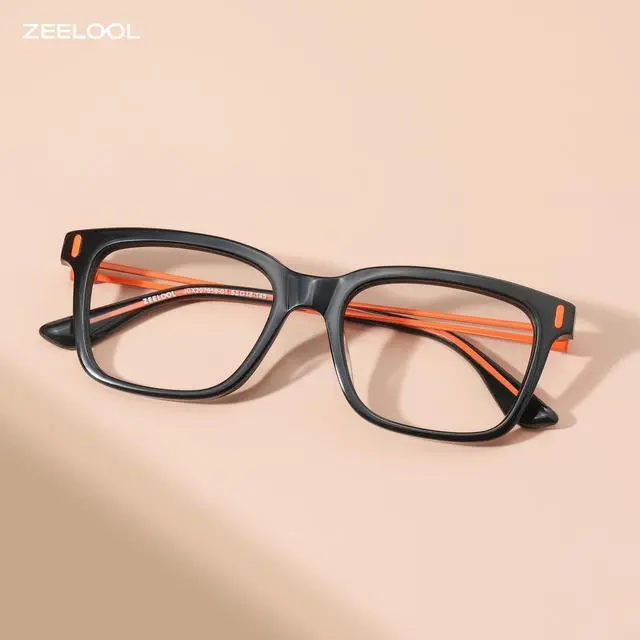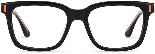 Our blue light blocking glasses comes with UV400 protective lenses, it can protect our eyes from blue light and harmful rays, relieve your vision fatigue and headache at work and in life to get a better sleep ^^ This rectangle glasses is engraved with vibrant orange spray-painted metal temples, creating a bold "broken color" contrast ^^ The Axel eyeglasses feature a sleek black rectangle frame, a perfect blend of street style and modern design ^^ With acetate frames and metal temples, these fashion glasses combine practicality and durability for a utilitarian look ^^