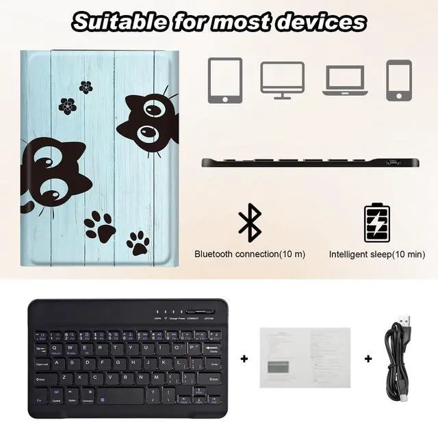Galaxy Tab A7 Case: 1. You can easily modify the screen angle and position for optimal viewing and typing. 2. Both the secure magnetic seal and the magnetic keyboard have anti-drop features. 3. With a stylish appearance, light and portable, not bloated. Suitable for indoor and outdoor use. 4. 360 Full Body Protective Case. Anti-Scratch External Leather, Non-slip rubber inner page, Soft TPU wrap shock absorption. 5. A range of different striking pattern design available for you to choose. Make your tablet unique and personality.