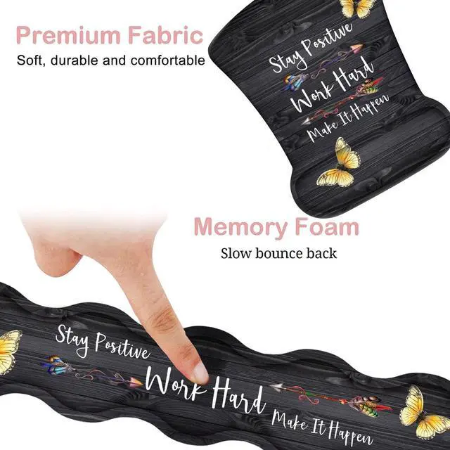 Ergonomic DesignEco-friendly with soft and breathable fabric and high-quality memory foam gel padding. Reduce wrist irritation, relieve wrist pain pressure, release tension, prevent wrist or hand injury, relax and comfort. ^^ Non-Slip Rubber Basecan firmly hold the desktop, preventing the keyboard and mouse pad from sliding or unnecessary movement, giving you a stable operation, allowing you to move the mouse freely without interruption. ^^ Fashionable AppearanceKeyboard Wrist Rest and Mouse Pad Wrist Rest Support Set adopts advanced printing technology with clear patterns and bright colors. The best gift ideas! ^^ Best SizeWrist Rest