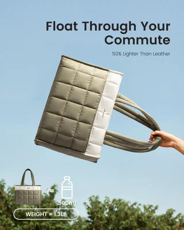 Commute Without the BurdenWeighs just 1.3 lbs! Say goodbye to heavy bagsover 50% lighter than traditional leather laptop totes! This ultra-light tote is your go-to for commuting, work, errands, or travel. ^^ Always Polished & Professional Its frame structure ensures it stands upright, even when emptyno slouching! Maintain a polished look at all times. The wide rectangular opening offers clear visibilitysee & grab anything in seconds! ^^ 35L Spacious & Organized Holds everything you need and more! Features 12 dedicated pockets, including a padded laptop compartment (fits up to 17.3" )