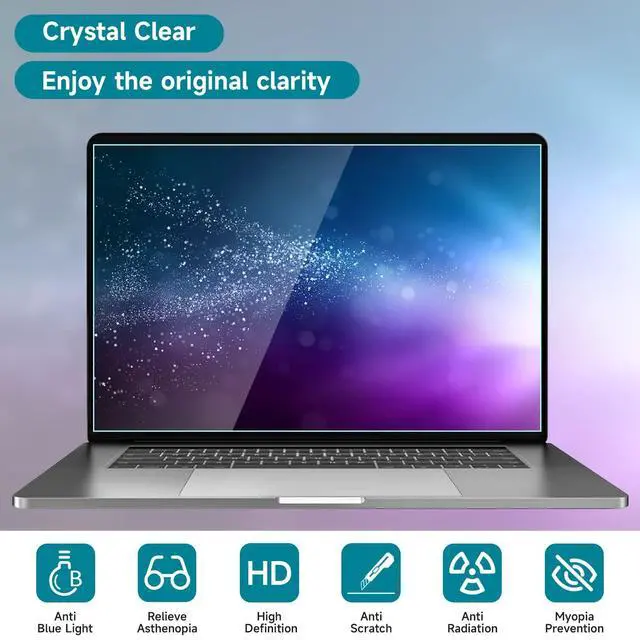Multi-Layer Anti-Blue Light ProtectionThis 16 inch blue light screen protector has the newest multi-layer blue light filtering technology and enhances anti-blue light performance, UV400 protection, Radiation Protection, and Anti-static, and relieves the fatigue of eyes. Anti-glare screen protector double protection makes you completely get rid of glare and be unaffected by reflected light from the screen. ^^ Compatible ModelThis laptop screen protector 16 inch is custom-made for all brands of 16 inch with 1920x1200 resolution laptops, ensuring a perfect fit. Please ensure that you clean your screen thoroughly before installation to achieve the best results.