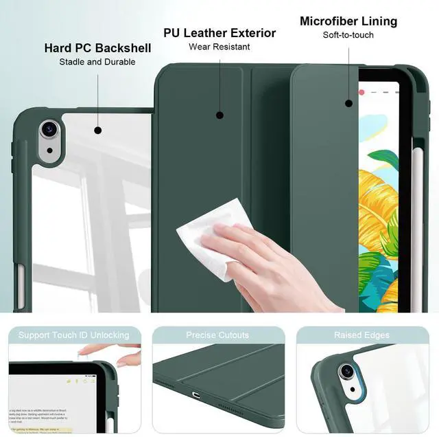Protection & Precise Cutouts]: Durable PU leather exterior and soft microfiber lining to prevent your 10th generation from being scratched. Hard PC clear back case with a flexible TPU frame protects your tablet from dripping and shocks. Precision cutouts allow access to all ports and buttons, raised edges on the camera and screen to prevent accidental scratches.
