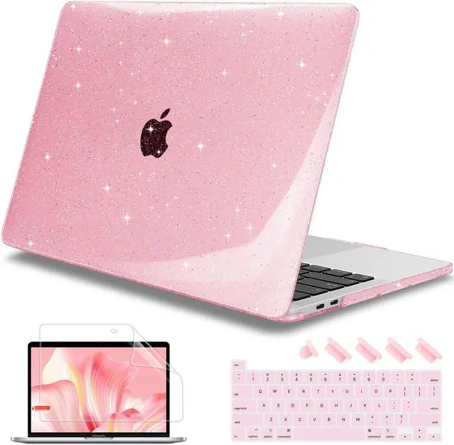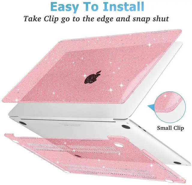 Mektron Glitter Case for 2020 MacBook Pro 13 inch A2338 M2 Compatible 2021 2022 Release M1 A2289 A2251, Sparkly Plastic Hard Shell Cover with Touch Bar Fits Touch ID, Glitter Pink